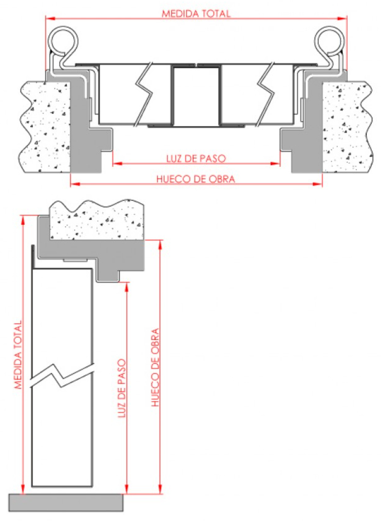 Luz de paso = media nominal – 95mm Medida total = media nominal + 20mm